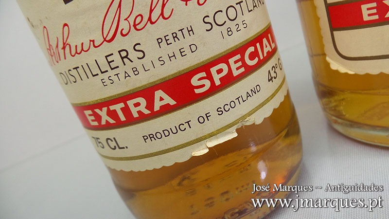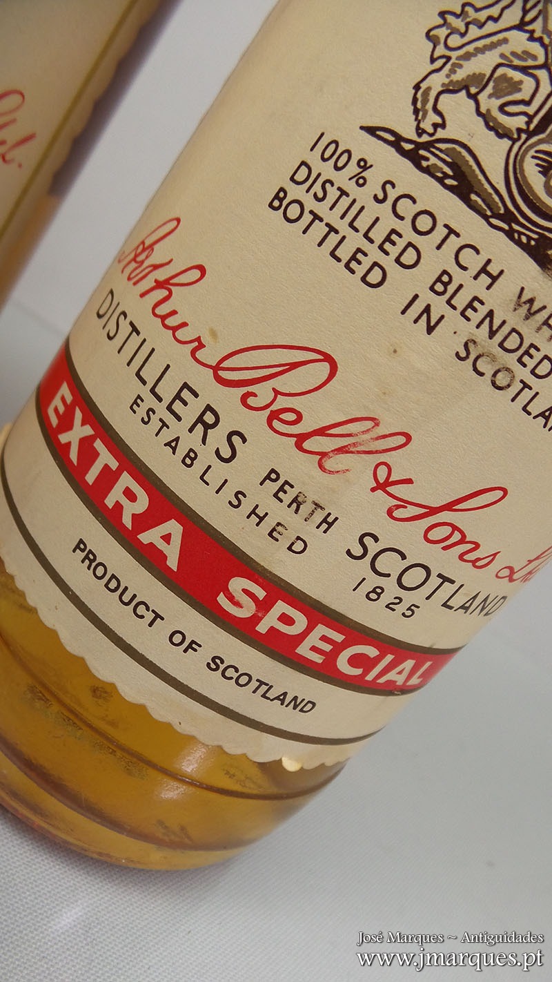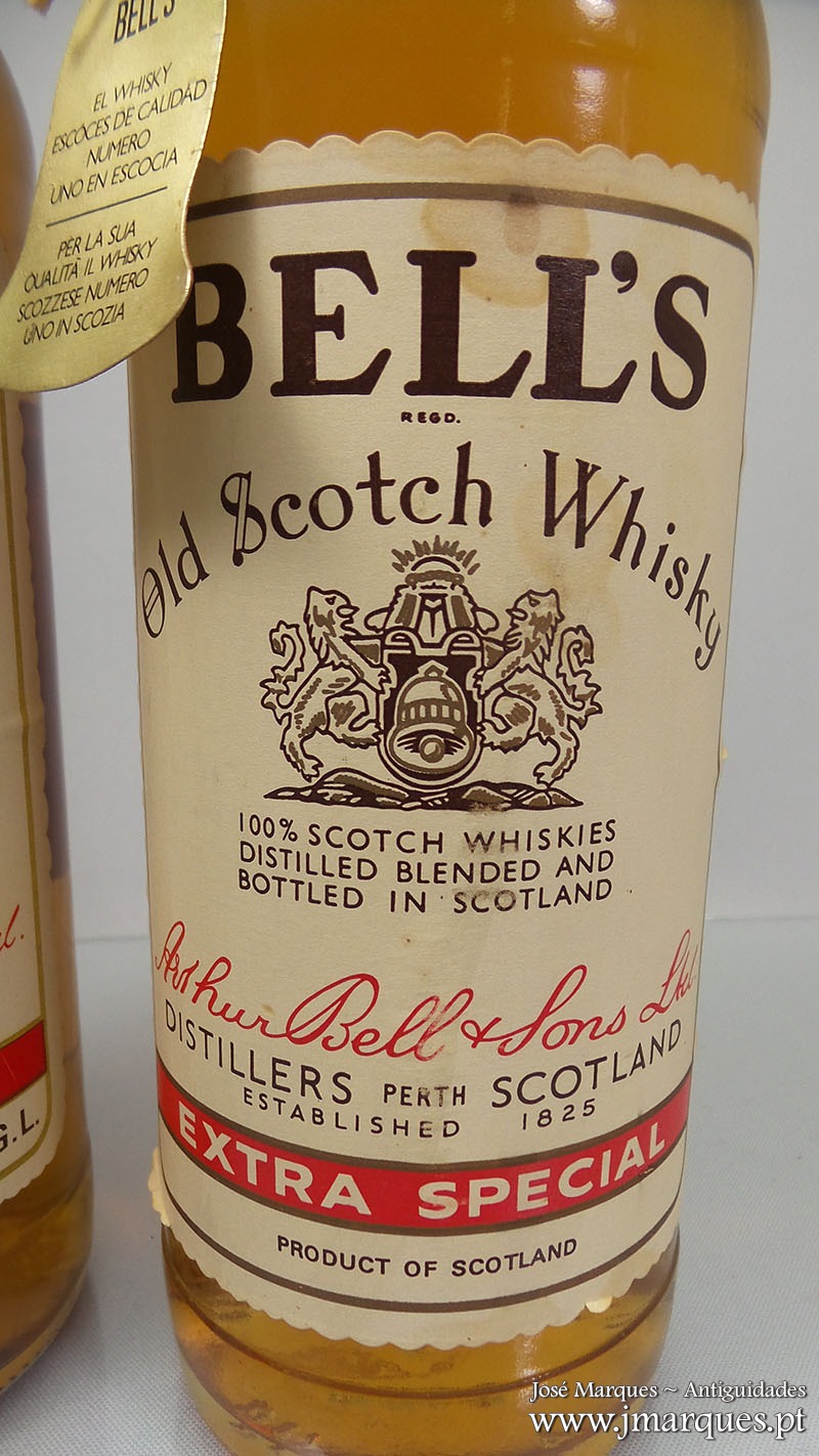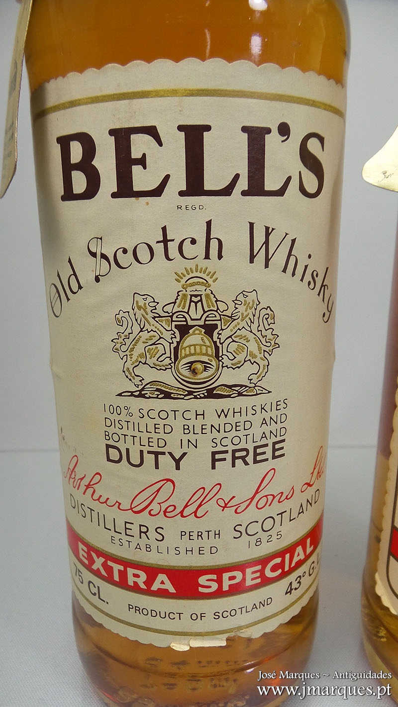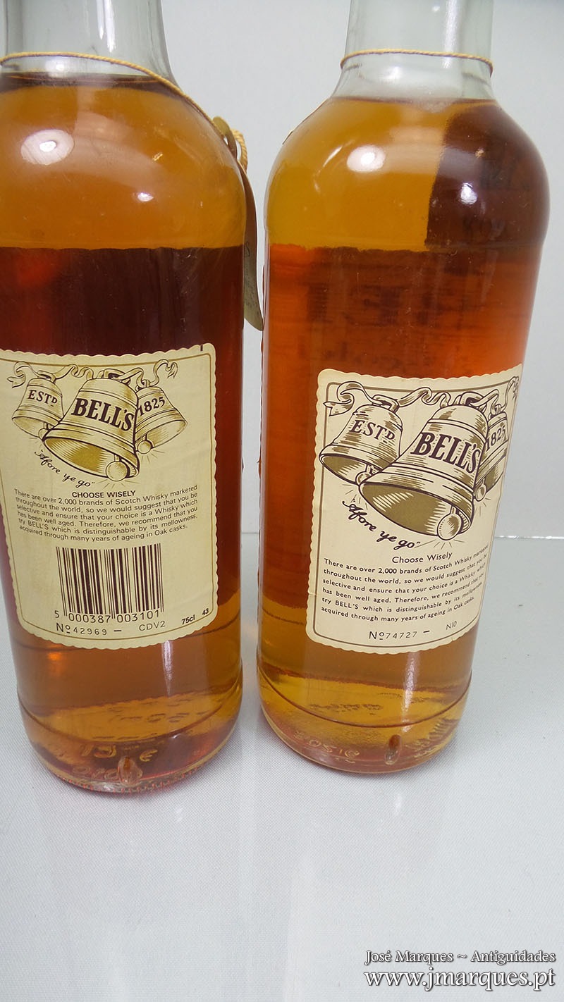 Duas garrafas antigas de whisky Bells Old Scotch Whisky. Sendo uma de 43% de volume.