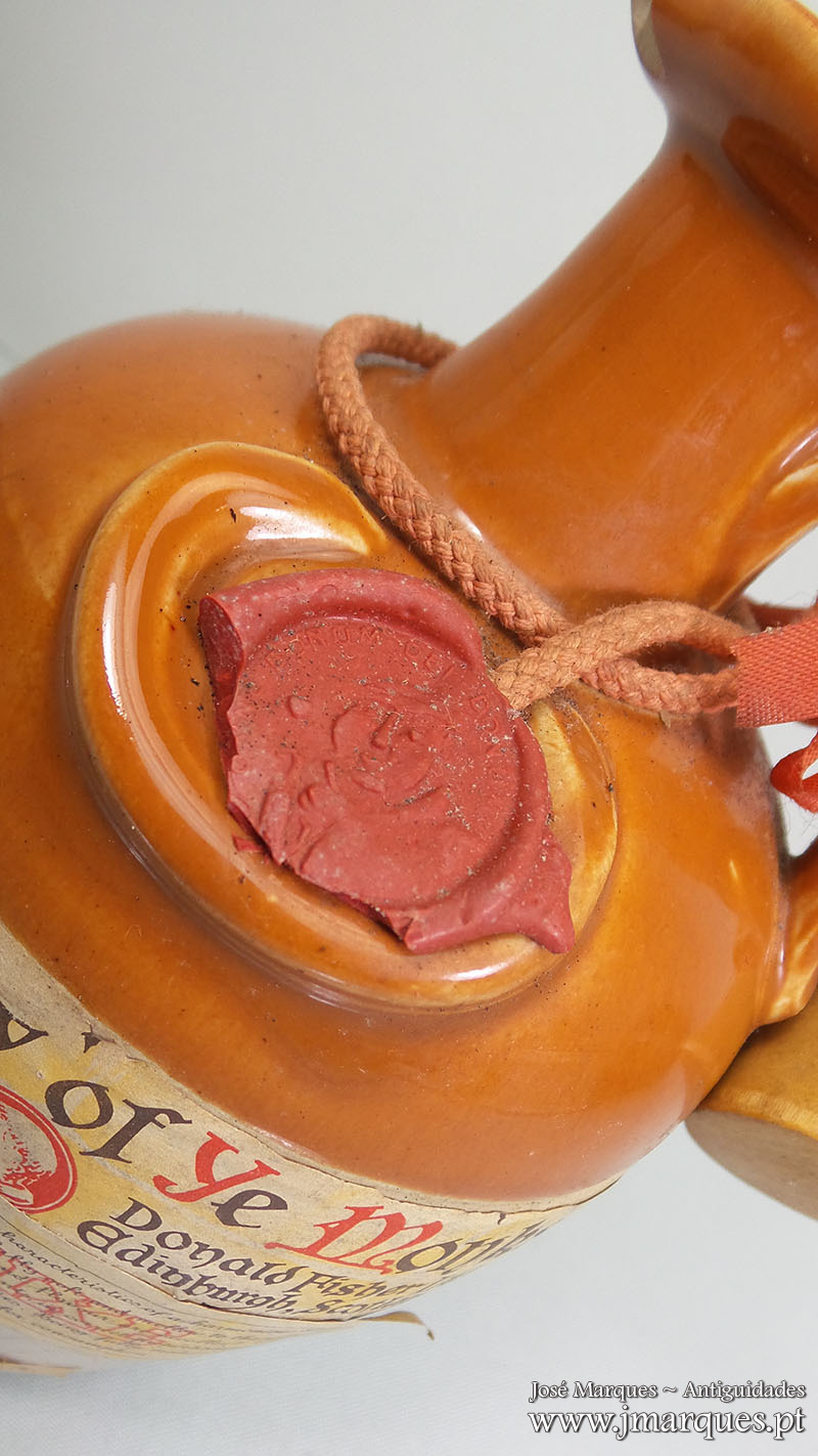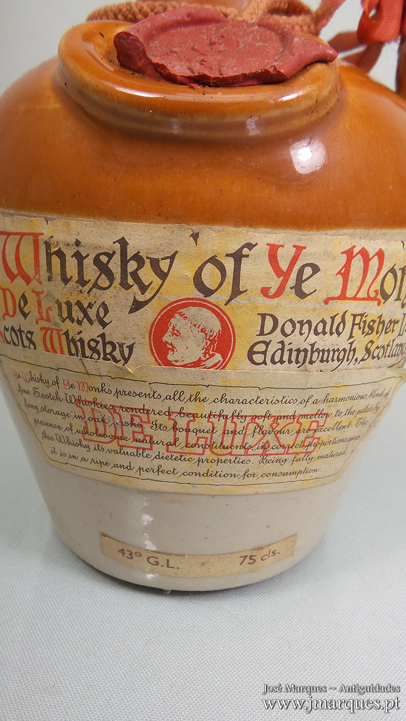 Garrafa antiga de Whisky Ye Monks, em cerâmica.