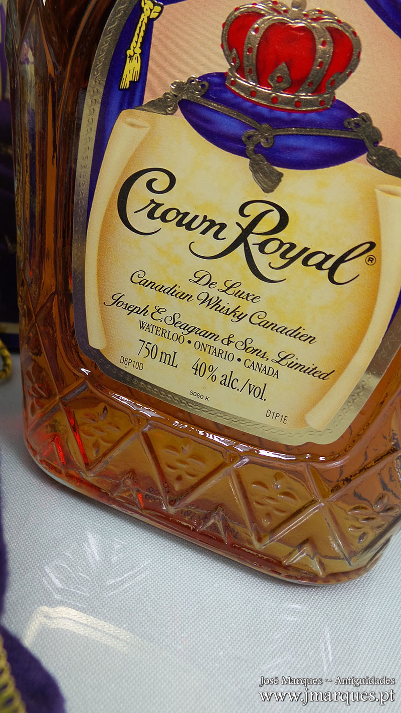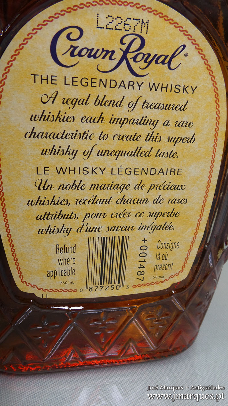 Garrafa antiga de Whisky Crown Royal, fine de luxe.