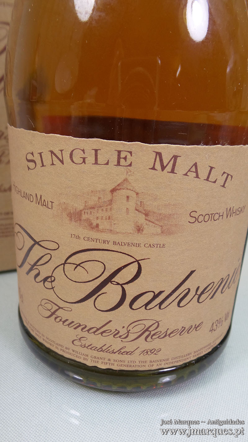 Garrafa antiga de whisky The Balvenie 10 Anos. Funders Reserve - Single Malt.