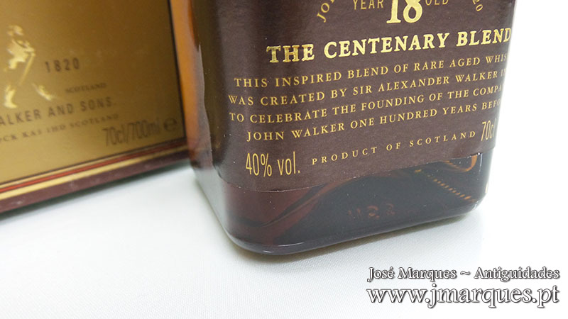 Garrafa de whisky Johnnie Walker Gold Label 18 Anos. The Centenary Blend.
