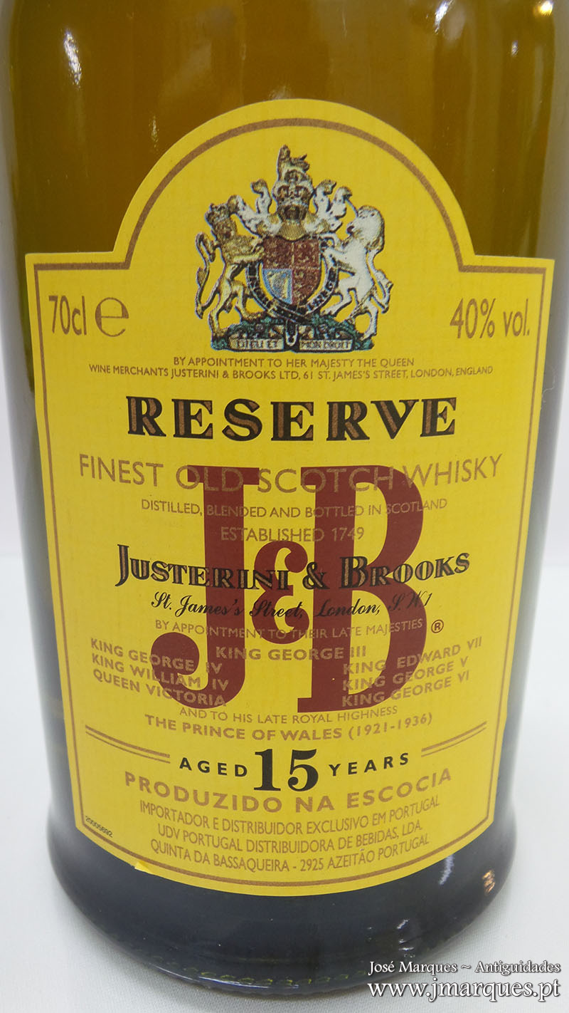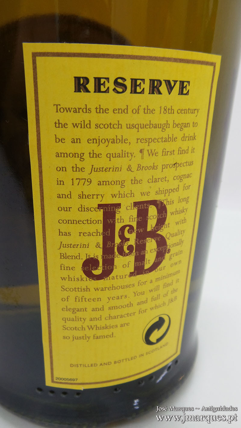 Garrafa de Whisky velho JB 15 Anos. Reserva.