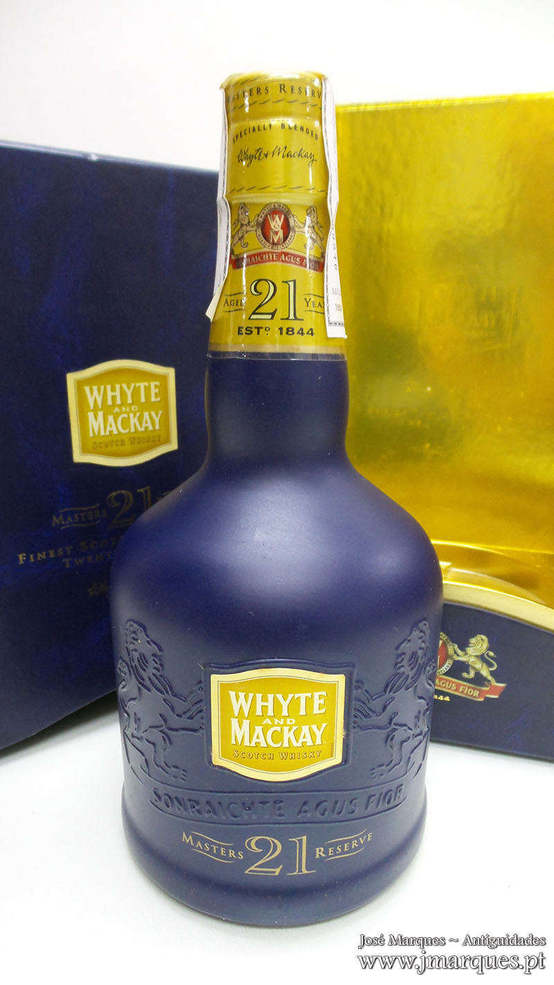 Garrafa antiga de Whisky Ballantines 21 Anos. Very Old Scotch Whisky . Em garrafa de cerâmica azul.