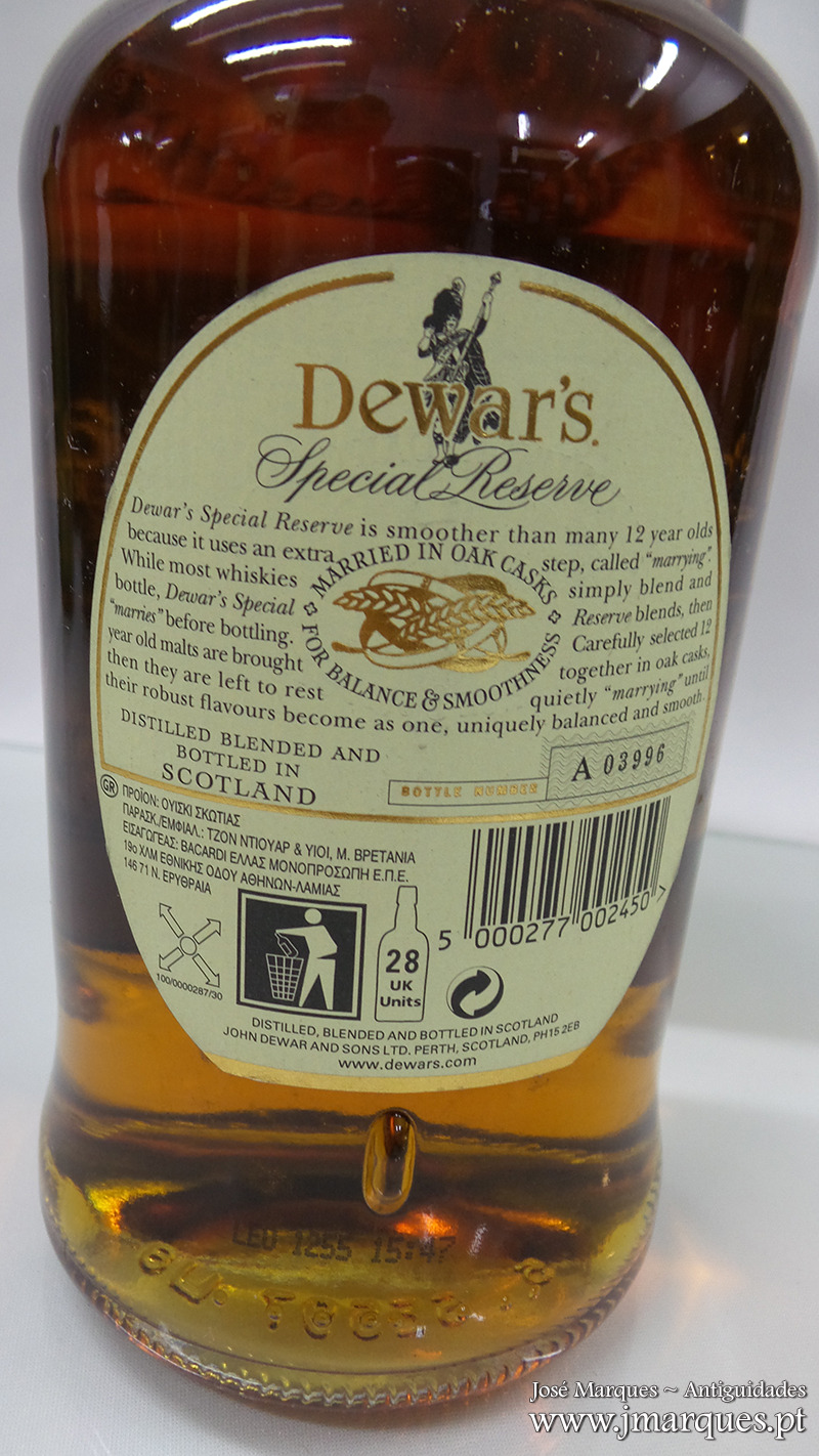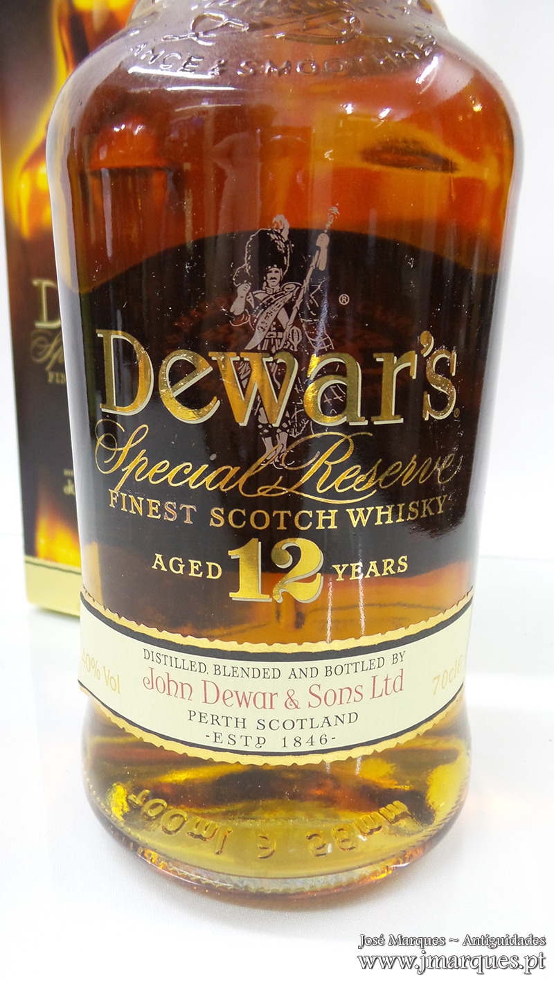 Garrafa de whisky Dewars 12 Anos – Especial Reserve.