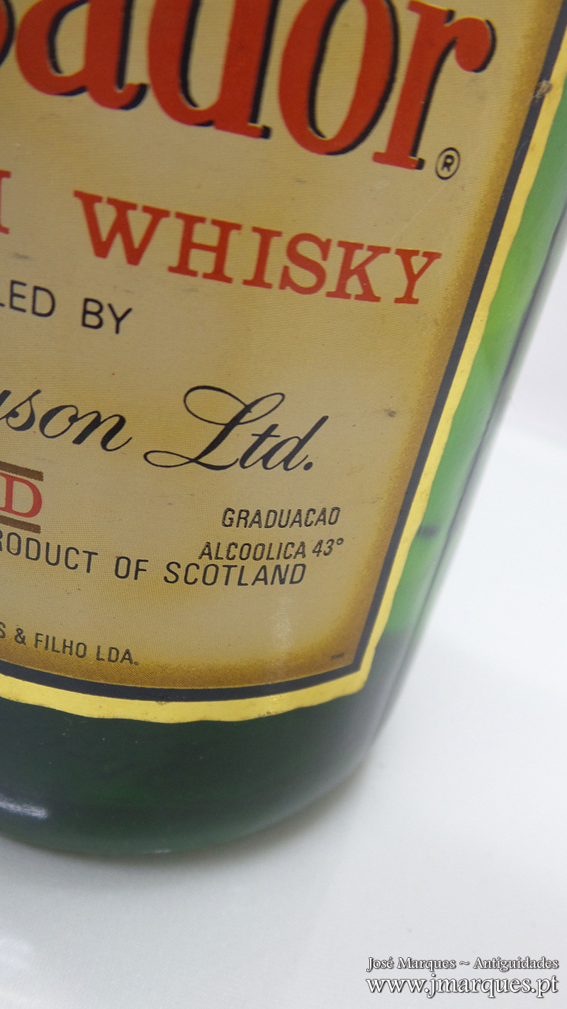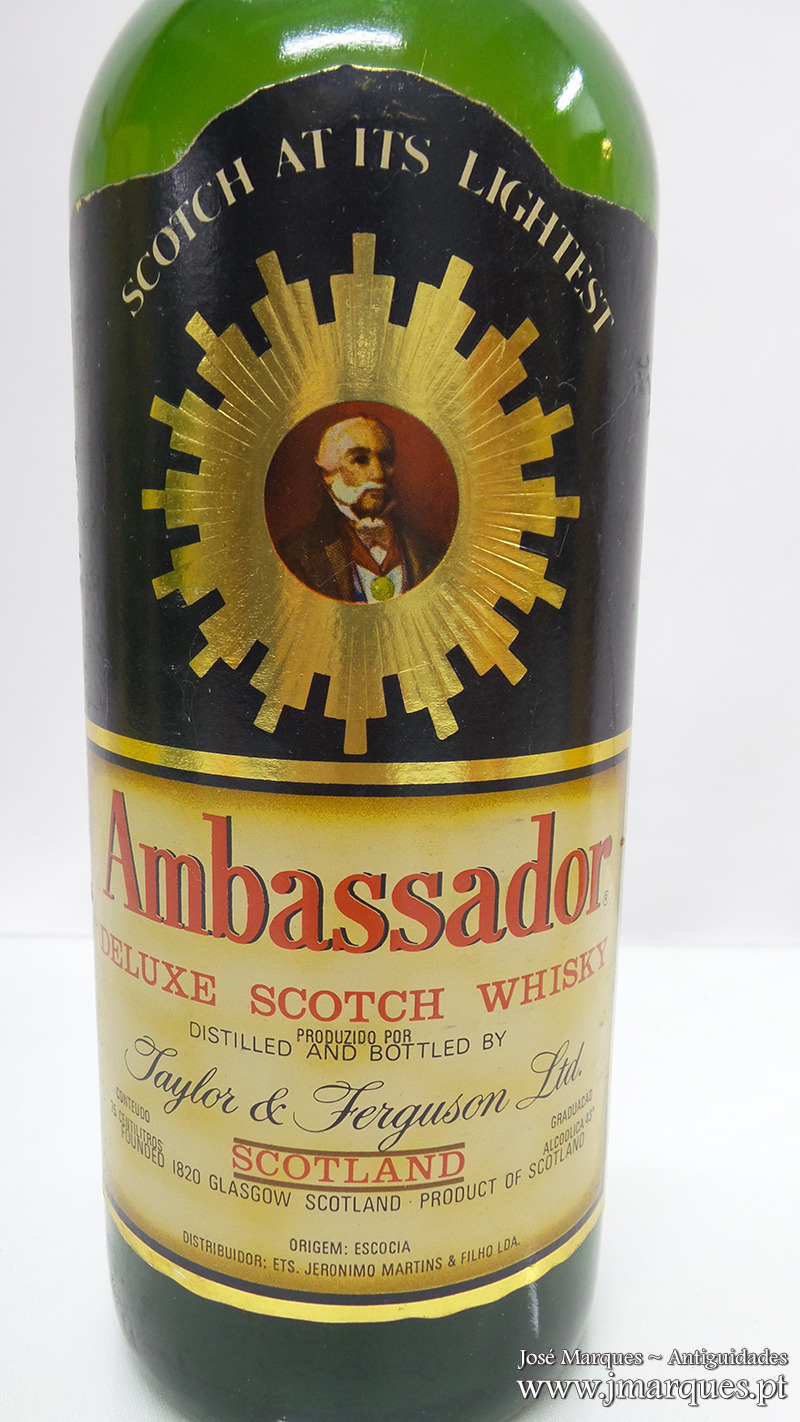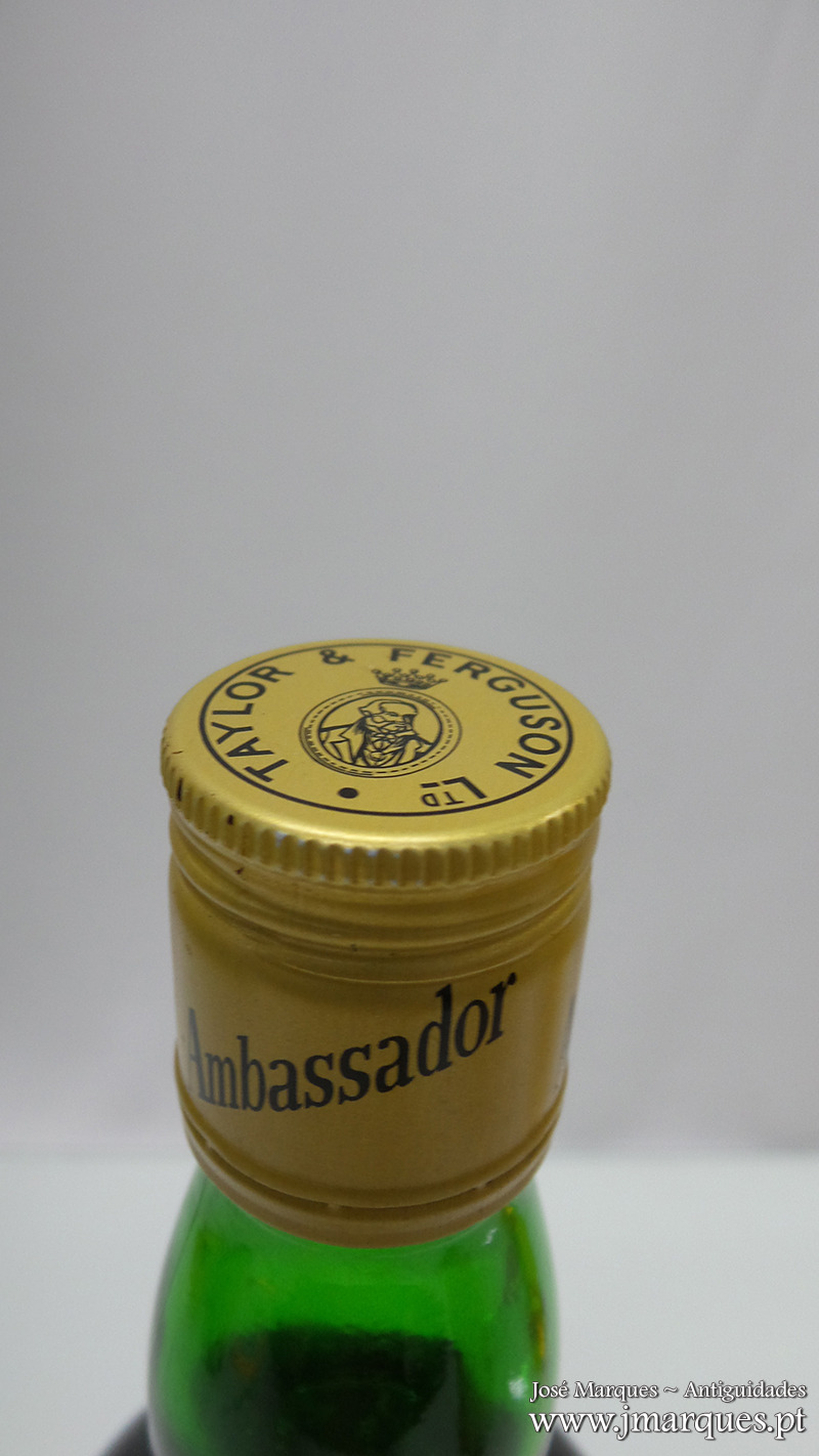 Garrafa antiga de whisky Ambassador. Taylor & Ferguson. Lda.