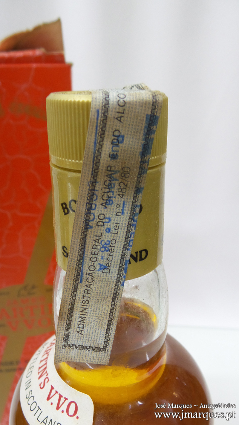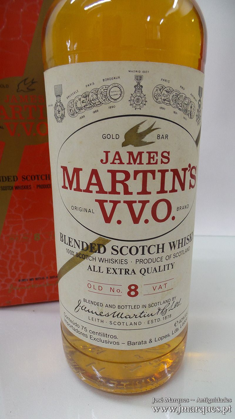 Garrafa antiga de whisky James Martins VVO. Old Nº 8 Vat.