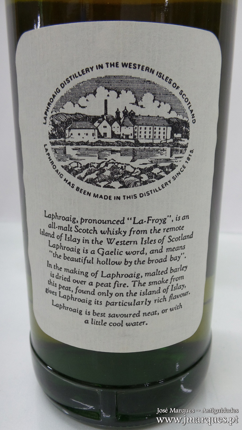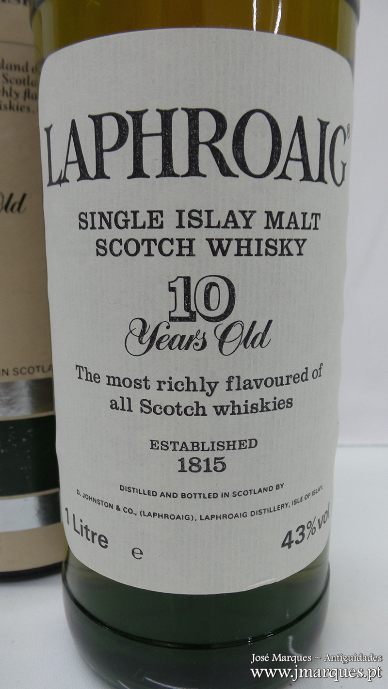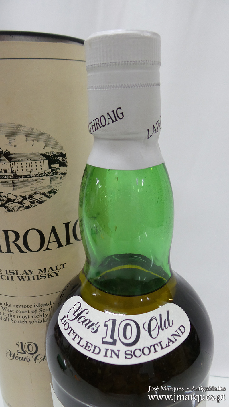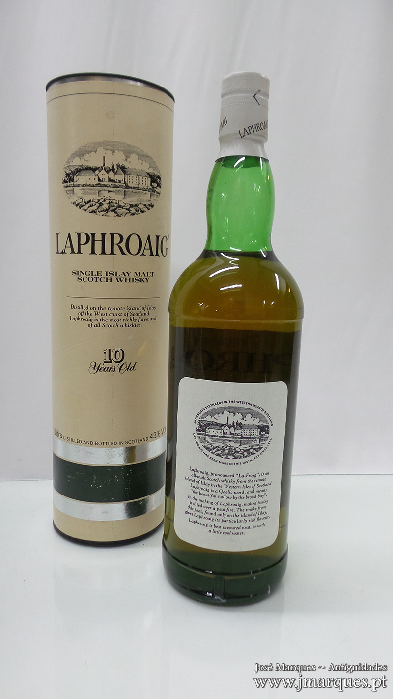 Garrafa antiga de whisky LAPHROAIG 10 Anos. (Rotulo antigo).