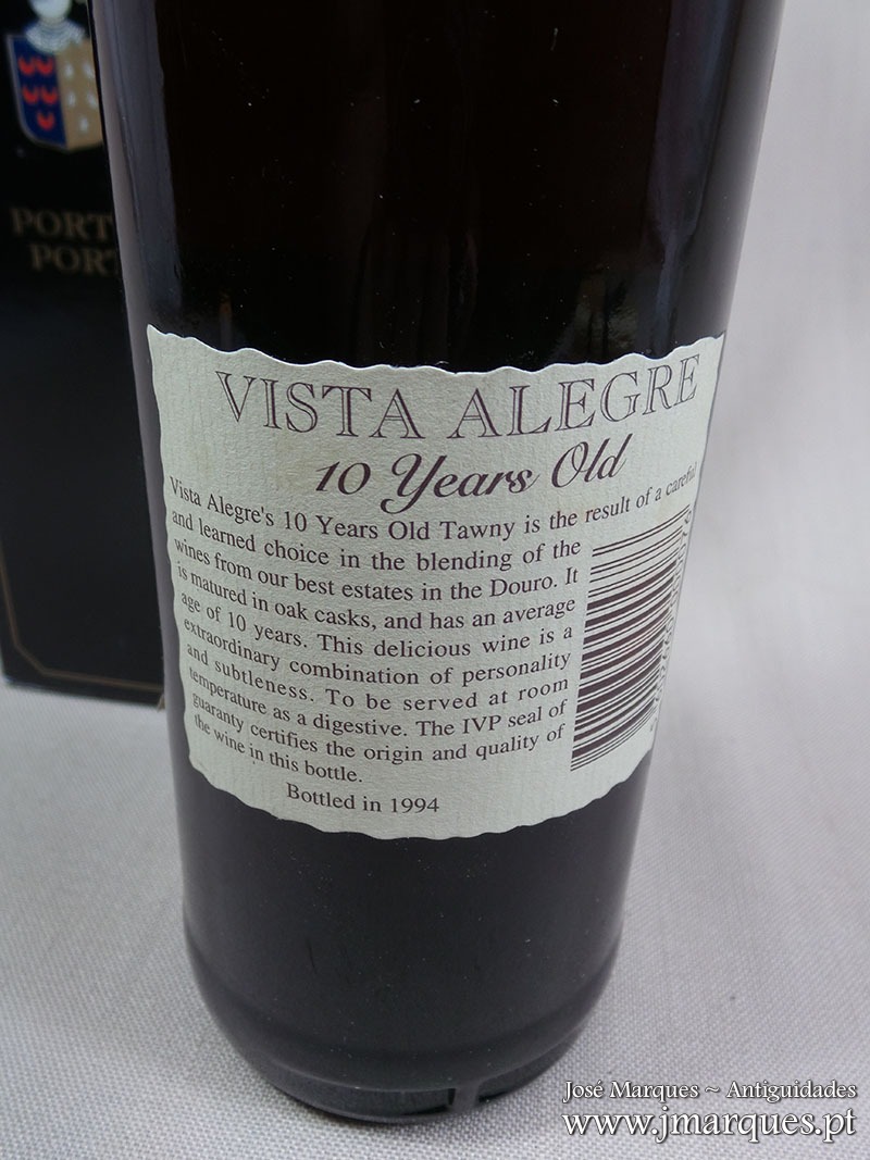 Garrafa de vinho do Porto Vista Alegre 10 Anos. Engarrafado 1994.